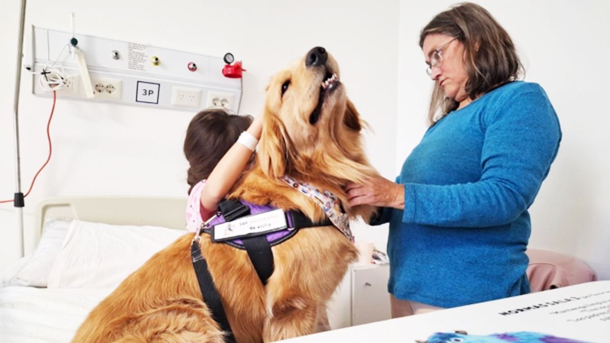 Los animales cumplen actualmente roles sociales de gran relevancia en su vinculación con los humanos. Es el caso de estas dos perras, Saru y Cora, que asisten a pacientes internados en el hospital "Sor María Ludovica" de La Plata. Los resultados positivos y beneficios de su intervención son notables.