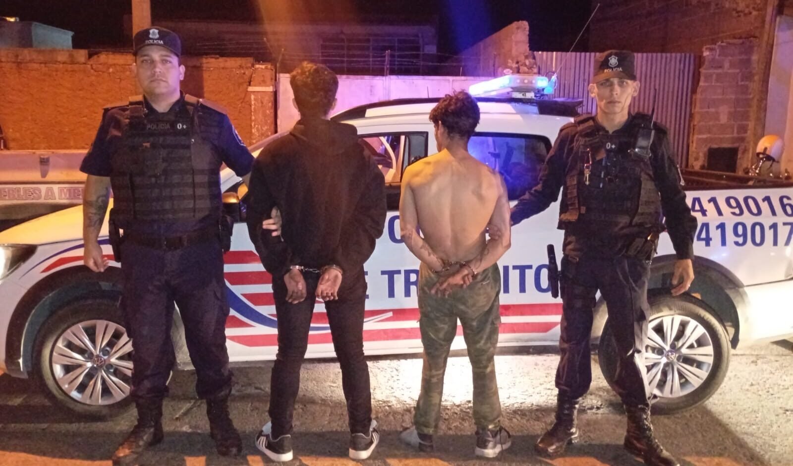 El hecho ocurrió durante la madrugada del fin de semana y fue detectado a partir de una denuncia ingresada al Centro de Monitoreo Municipal. Los sospechosos fueron capturados cuando intentaban huir del lugar.