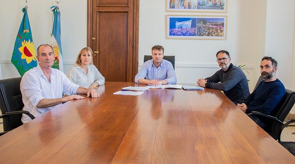 El encuentro se concretó en la sala de reuniones, donde el jefe comunal estuvo acompañado por el secretario de Desarrollo Económico y Productivo Pablo Di Uono y el subsecretario de Empresas e Inversiones Bernardo Baldino. Recibieron a Andrés Rene Diorio, quien arribó junto a su esposa a formalizar la firma del boleto de compra venta correspondiente.