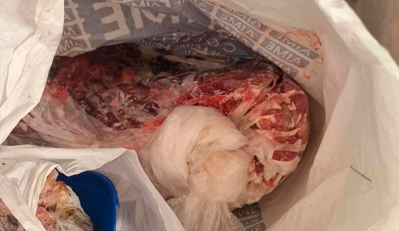 Uno de los procedimientos arrojó resultado positivo, donde se secuestraron cortes cárnicos con restos de tierra, pastos y pelos vacunos negros —de aproximadamente 12 kilos—, además de varios cuchillos con restos de grasa y sangre, un proyectil calibre 22 y siete garrones de carne.